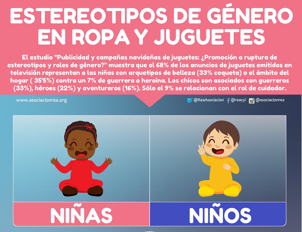 Una vez visto los estereotipos que rodean a hombres y mujeres, debemos entender como se llegan a ellos ¿desde cuando se «envían» mensajes a niños y niñas sobre cómo debe ser un hombre o una mujer? Pues, lamentablemente, desde que nacen (o incluso antes) porque los juguetes y la ropa ya cambian de niños a niñas.